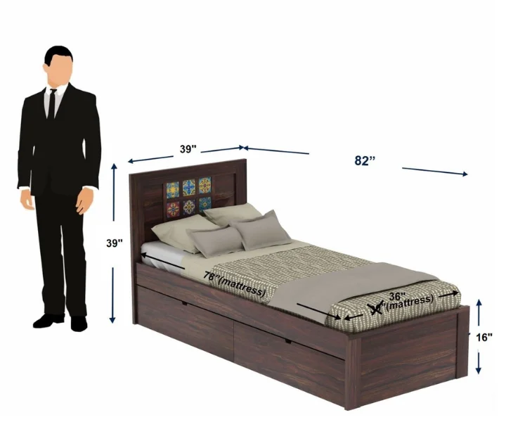 Livinn Solid Sheesham Wood Single Bed With Two Drawers Original price was: ₹37,899.00.Current price is: ₹24,299.00.