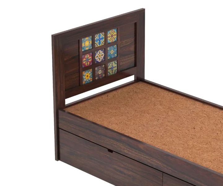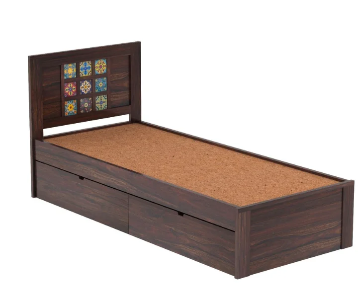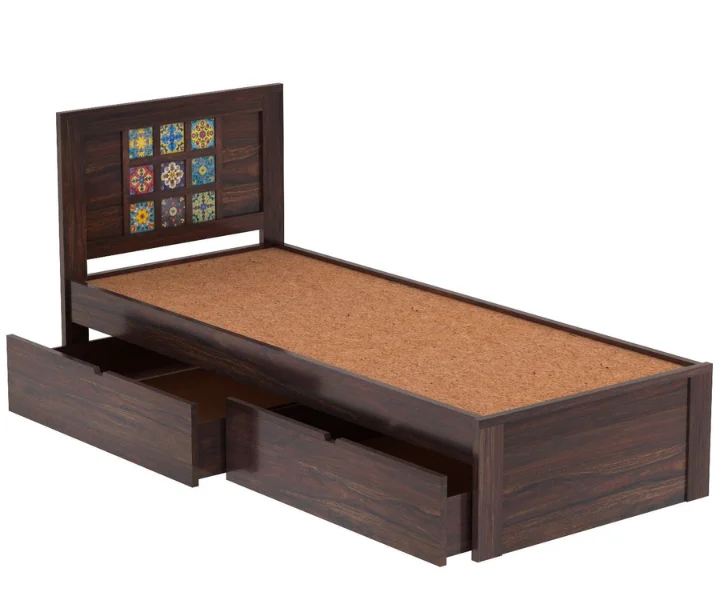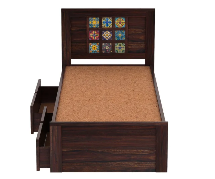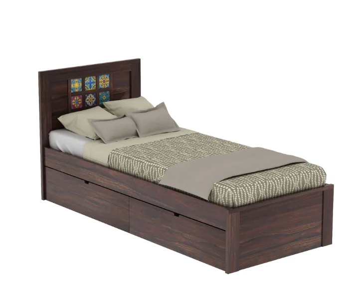 Livinn Solid Sheesham Wood Single Bed With Two Drawers