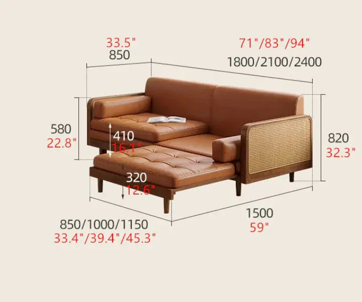 back(W 71″/83″ /94″ x D 33.5″ x H 22.8″ front/32.3″ back)