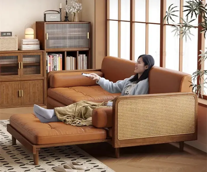 This sofa bed can be used as soft and comfort sofa , also can be used as chaise lounge, you can pull out left or right sofa frame according to your need and the layout of your room. When you need a bed for you or your guest, just pull out both of the bed frames.