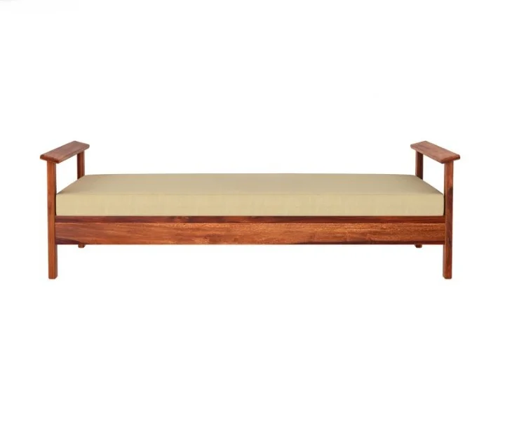 Leona divan is a sober design of furniture. It is a plain broad divan with armrests that are straight and slightly slanted inwards. The entire divan is with planks that are nailed at equal intervals and in vertical order. Legs of the divan are completely straight and adjoining with the armrests.