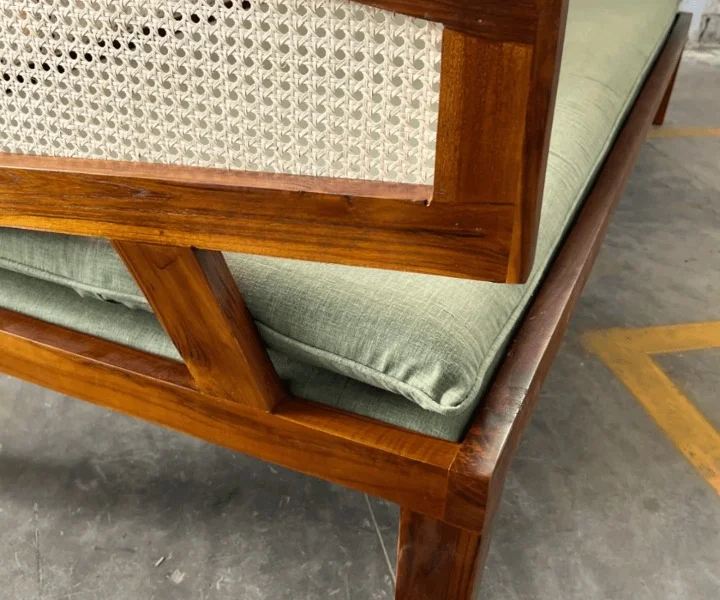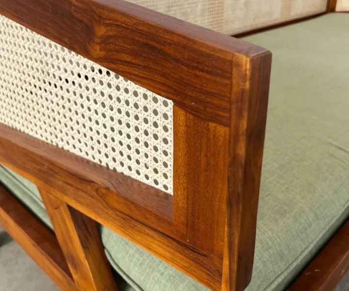 Product Features: Henry 3-Seater Sofa is the perfect amalgamation of elegance and comfort. The panel rolled arms, and tufted backrest of this fabric sofa, will infuse regal style in your interior while maximizing the seating comfort. The base frame of this fabric sofa is crafted from pure Sheesham wood that guarantees its long-lasting durability.