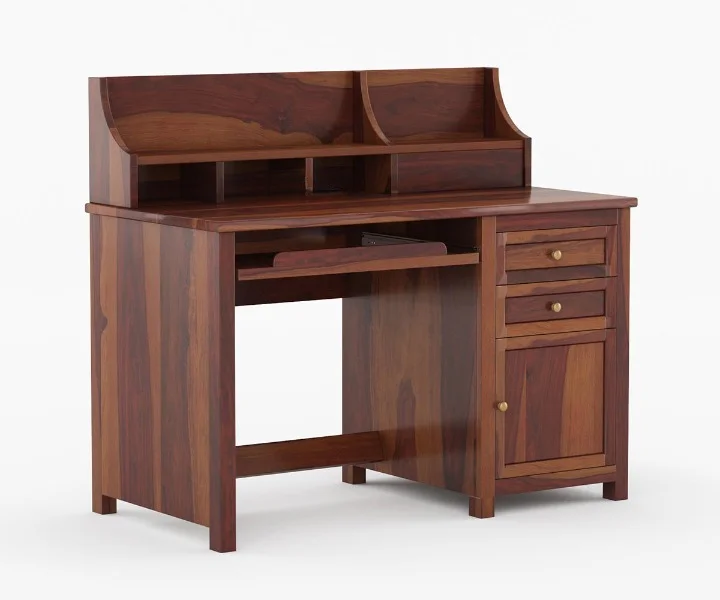 2. Nettle is crafted from solid wood, which can be identified with the grained pattern over the surface of this wooden study table.