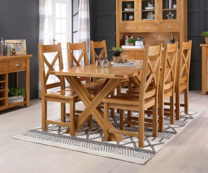 It has a solid Teak X frame cross leg base design that is of architectural excellence and the thick Teak top certainly portrays the feeling of quality. It is a very strong and sturdy rectangle Teak dining table and the build quality is exceptional.