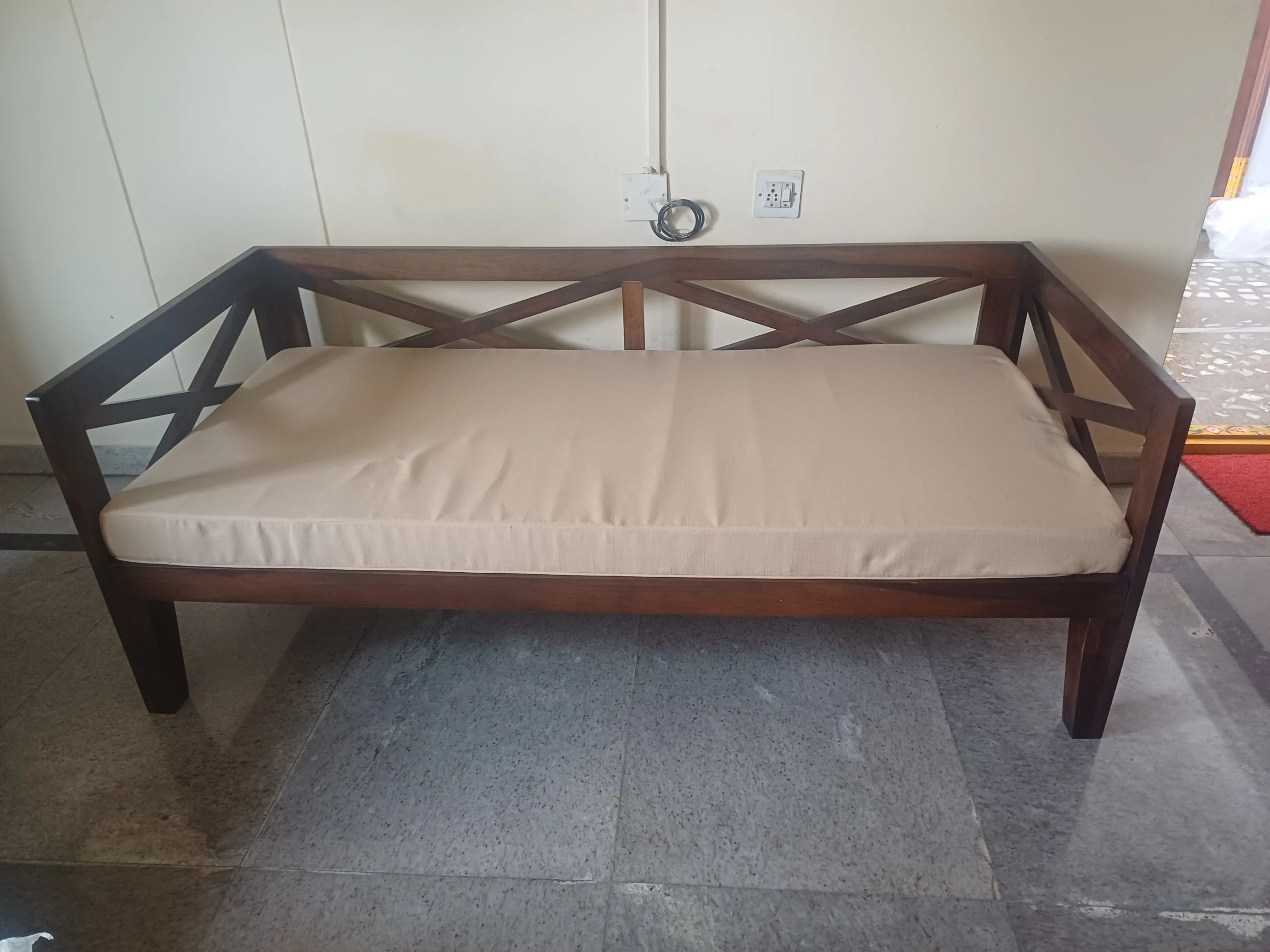 A spacious and elegant Diwan made of Sheesham wood. It has a smooth and glossy finish and a sturdy and durable structure. It has ample storage space and a sleek design.