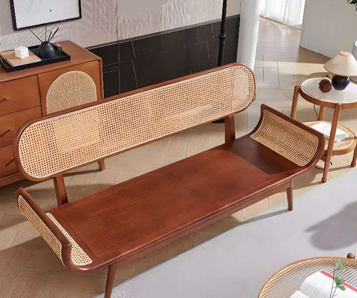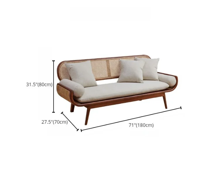 Upgrade your living space with this stylish wooden sofa set, crafted with a solid wood frame and elegant rattan weaving on the sides and back. The set includes a 3-seater, 2-seater, and single-seater sofa, paired with soft cushioned seating and supportive pillows for maximum comfort. Its natural wooden finish and airy rattan design add a touch of modern elegance while keeping the look light and cozy.