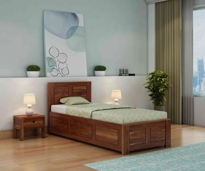 Woodwing Solid Sheesham Wood Single Bed With Box Storage