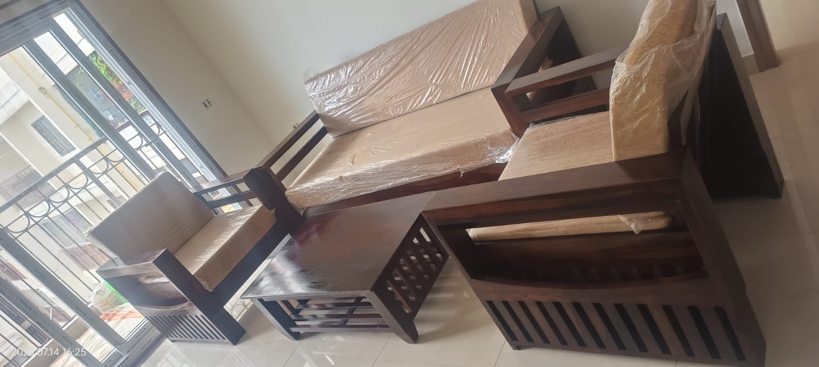 This sofa set took a while to get delivered, but it was worth the wait! The wood is beautiful, the cushions are plush, and it feels very well-made.